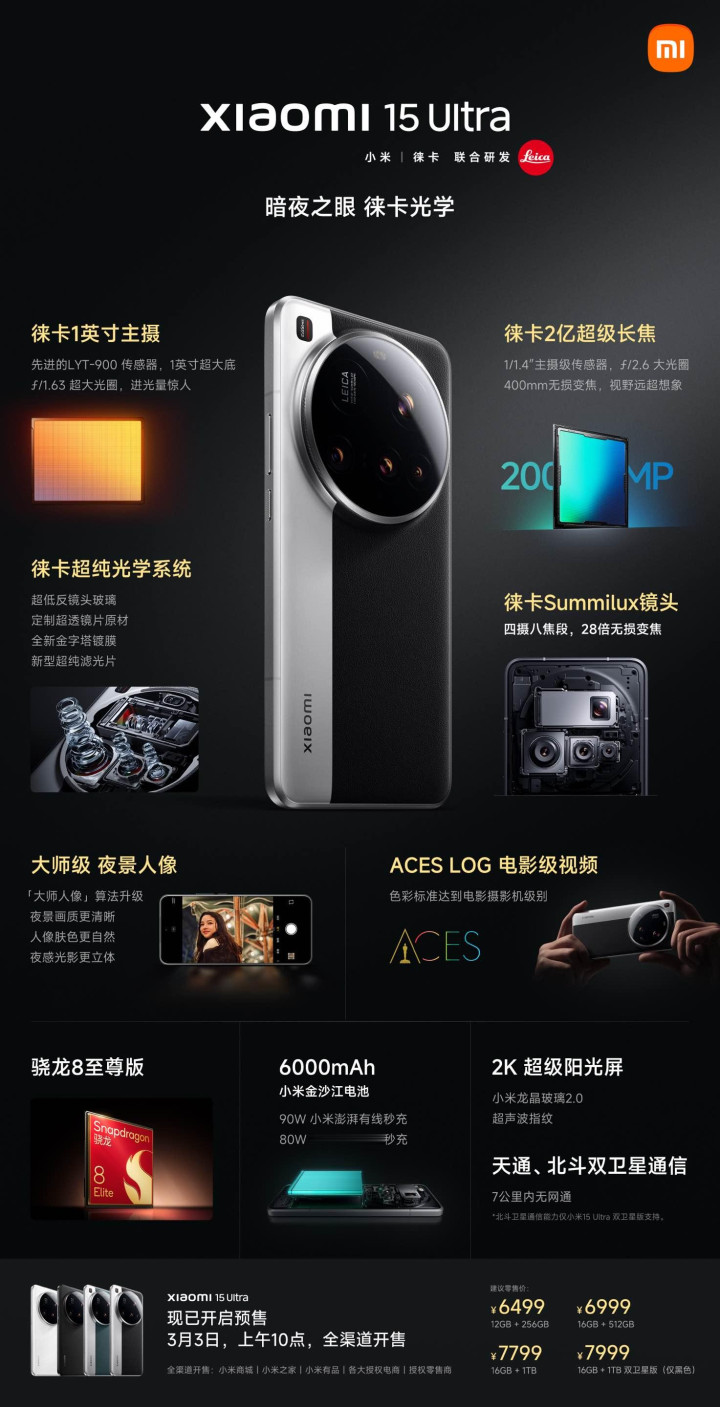 性能方面,小米15Ultra搭载骁龙8至尊版,双路翼型环形冷泵散热,还搭载了6000mAh小米金沙江电池,号称「小米史上续航实力最强Ultra」。